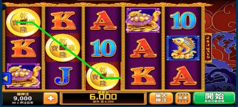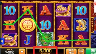 每條線注300,押住k*4的賠率為20,此局獎金為300*20=6000