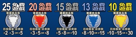 當中銅幣三連線以上時則可進入免費遊戲,玩家可選擇想要的免費局數及倍數。